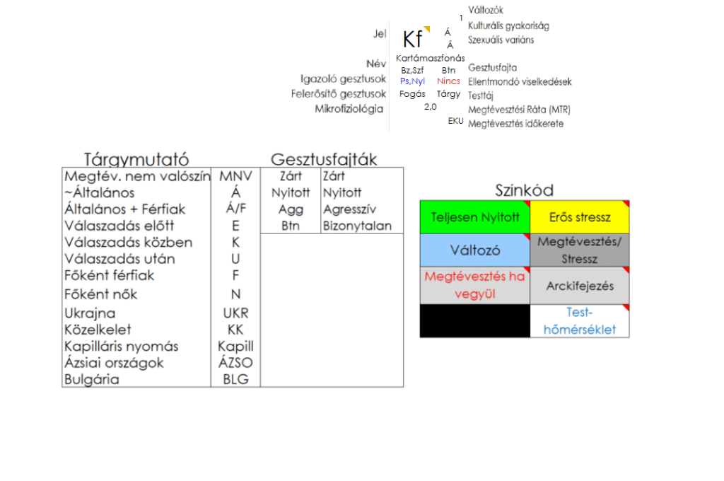 Igazoló gesztusok a bokazár (Bz) és a széklábfonás (Szf), ellentmondó gesztusa nincs. Felerősítő gesztusok a pislogás (Ps) és a nyelés (Nyl). Ez a gesztus a bizonytalan kategóriába tartozik.