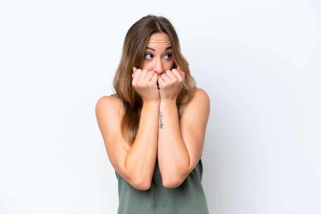 A félelem (Fm) arckifejezése miatt a szemek kitágulnak, felfedve a sclerát az írisz teteje és alja körül. Az ajkak vízszintesen hátra nyúlnak, a szemöldök pedig kifelé emelkedik.
