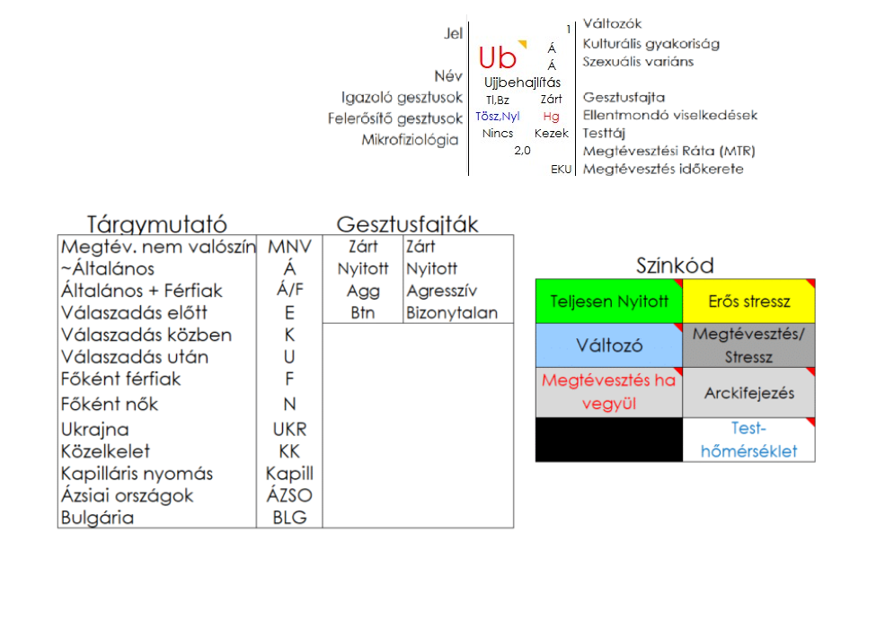 Az ujjak behajlítása (Ub) a tenyér felé egy remek mérőeszköze az alany pillanatnyi feszültségének. Ha egy interjúban észreveszi az ujjak kicsi mozgását, rengeteg információhoz juthat, ha párosítja az interjú kérdéscsoportjának verbális és érzelmi tartalmával.