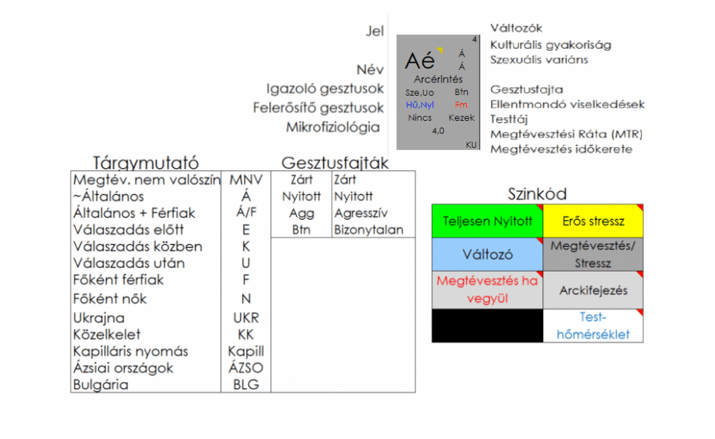Igazoló gesztusok a szájeltakarás (Sze) és az ujj az orrhoz (Uo), ellentmondó gesztus a félelem (Fm). Felerősítő gesztusként testhűtést (Hű) és nyelést (Nyl) figyelhetünk meg. Ez a gesztus a bizonytalan kategóriába tartozik.