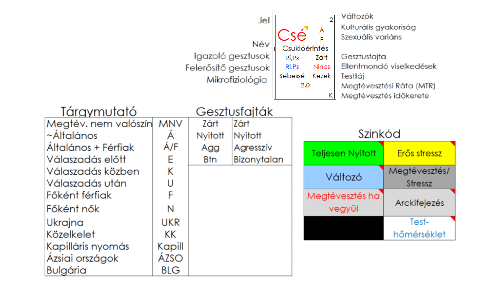 Igazoló- és felerősítő gesztusok a ruhaigazítás és a pislogás, ellentmondó gesztusa nincs. Ez a gesztus a zárt kategóriába tartozik.