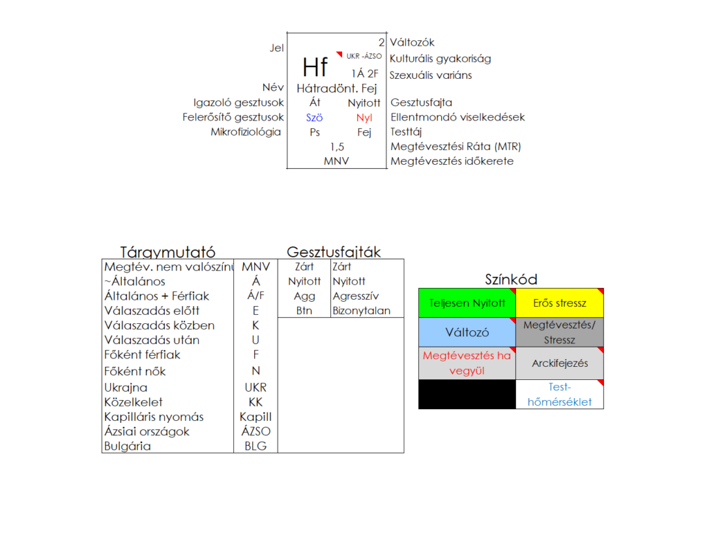 Igazoló gesztusként az Állkitolást (Át), felerősítő gesztusként pedig Szöszölést (Szö) láthatunk. Ellentmondó viselkedésként Nyelést (Nyl) figyelhetjük meg. Ez a gesztusfajta a Megtévesztés nem valószínű kategóriába tartozik.